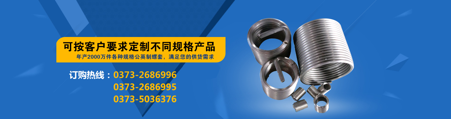 具備普通型和鎖緊型鋼絲螺套的相應功能。采用高溫合金材料(SY90、SY750)生產,適用于650℃高溫環境。        耐高溫鋼絲螺套的規格、尺寸、參數等詳細說明請致電15517311768咨詢或登錄http://www_zhongguangongye_com.xahxsygc.com下載電子版鋼絲螺套使用說明書。.. [詳情]